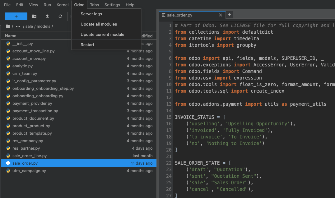 Odoo es un software de gestión empresarial (ERP) de código abierto que ofrece una amplia gama de aplicaciones integradas para administrar diferentes aspectos de un negocio, desde ventas y compras hasta contabilidad y recursos humanos. Es conocido por su flexibilidad, adaptabilidad y la posibilidad de personalizarlo según las necesidades de cada empresa.